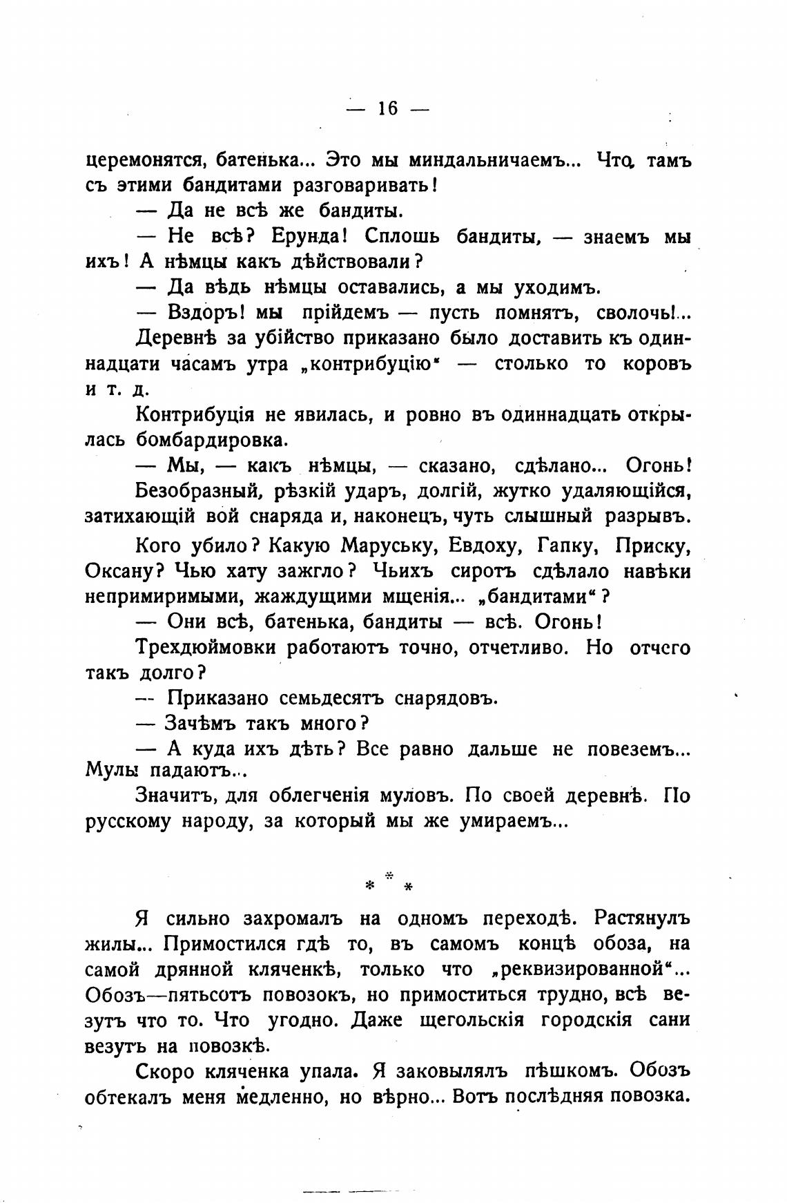 Скоро кляченка упала. Я заковылялъ п±шкомъ. Обозъ