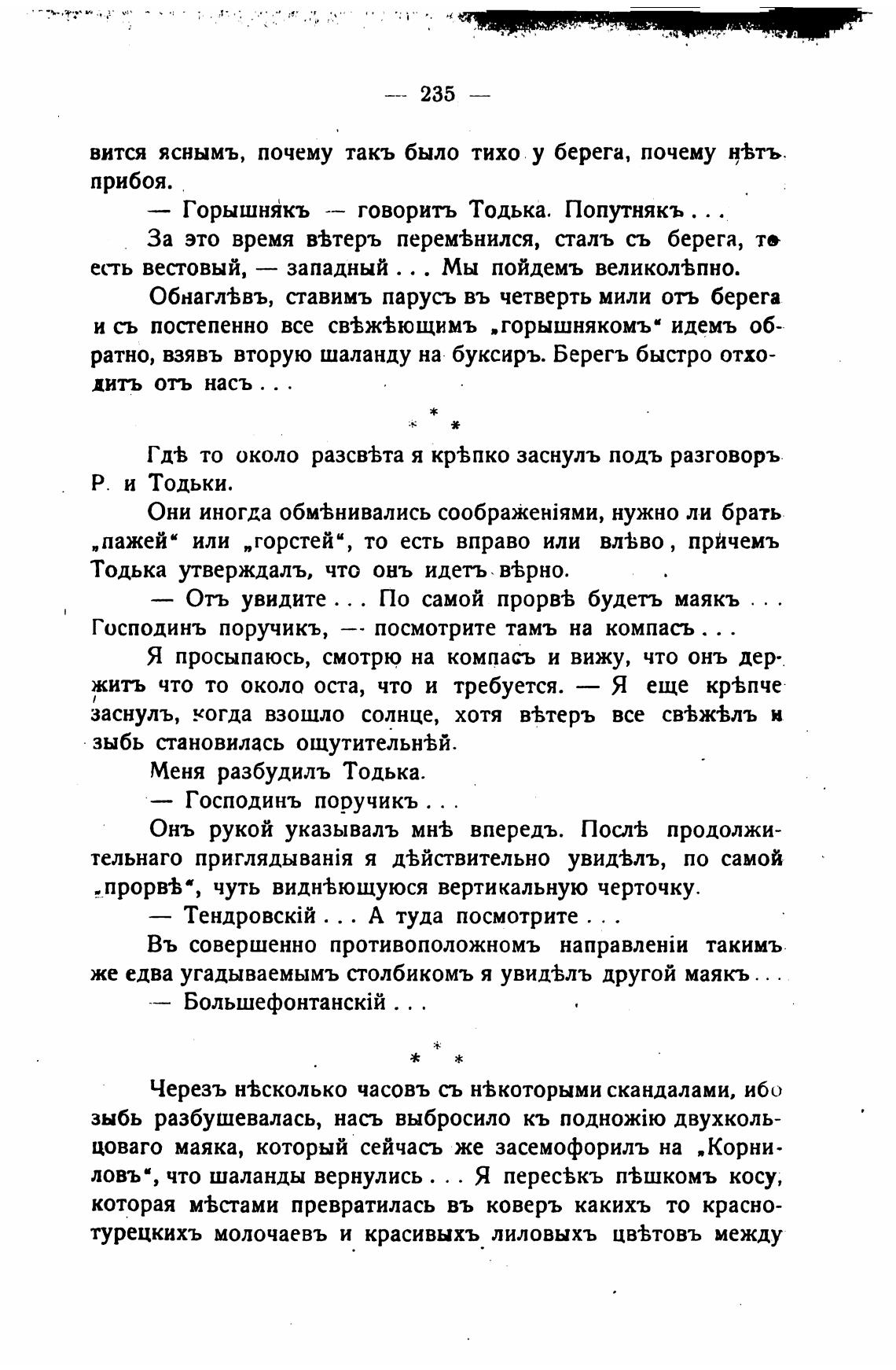 лове, что шаланды вернулись . .. Я перес%къ п•Ьшкомъ косу,