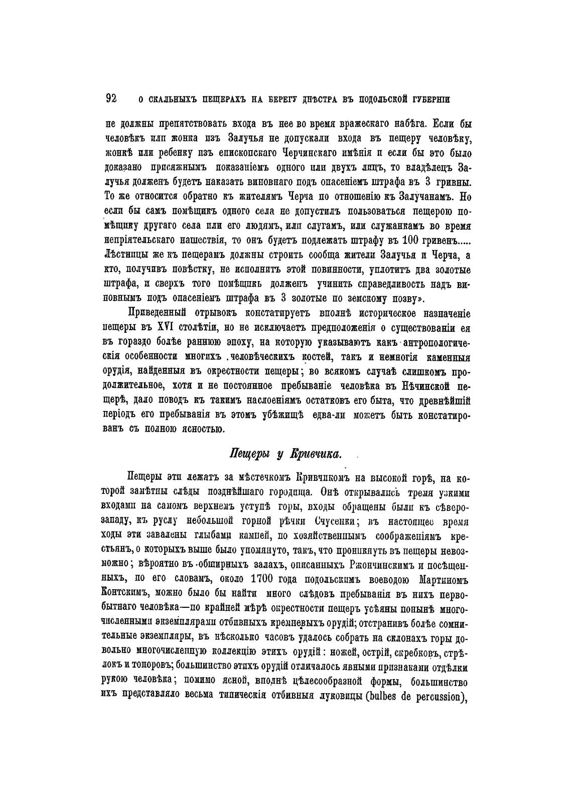 Пещеры эти лежать за мытечкомъ КРИВЧПКОМЪ на высокой горв, на ко-