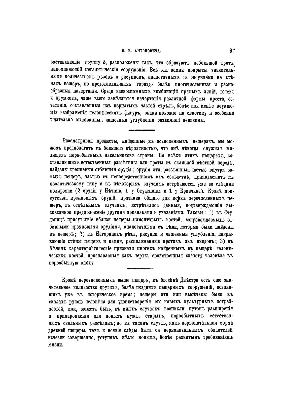 въ пещеры 2) въ Нагорянахъ рвзы, рисунки и чашечныя угдубјетя, покры-