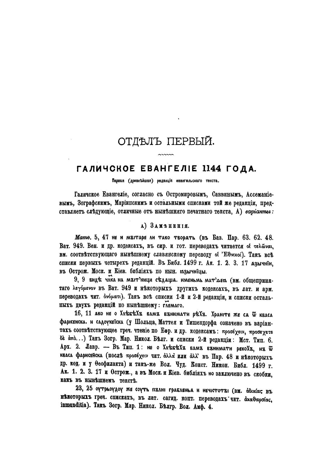 Первая (дрвн%йшая) вдакцћ евангельскаго текста.