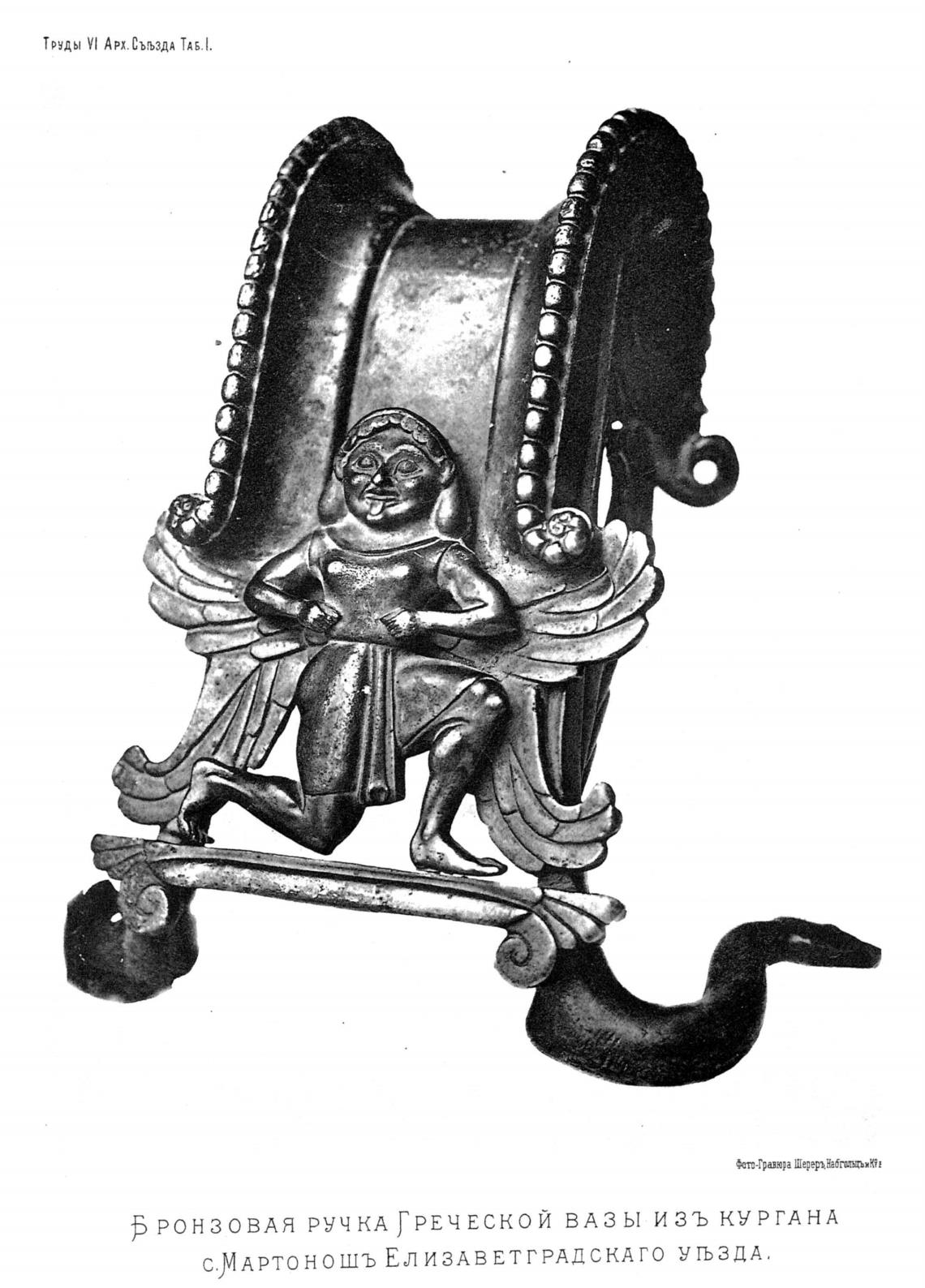 >РОНЗОВАЯ РУЧКА ГРЕЧЕСКОЙ ВАЗЫ ИЗЪ КУРГАНА