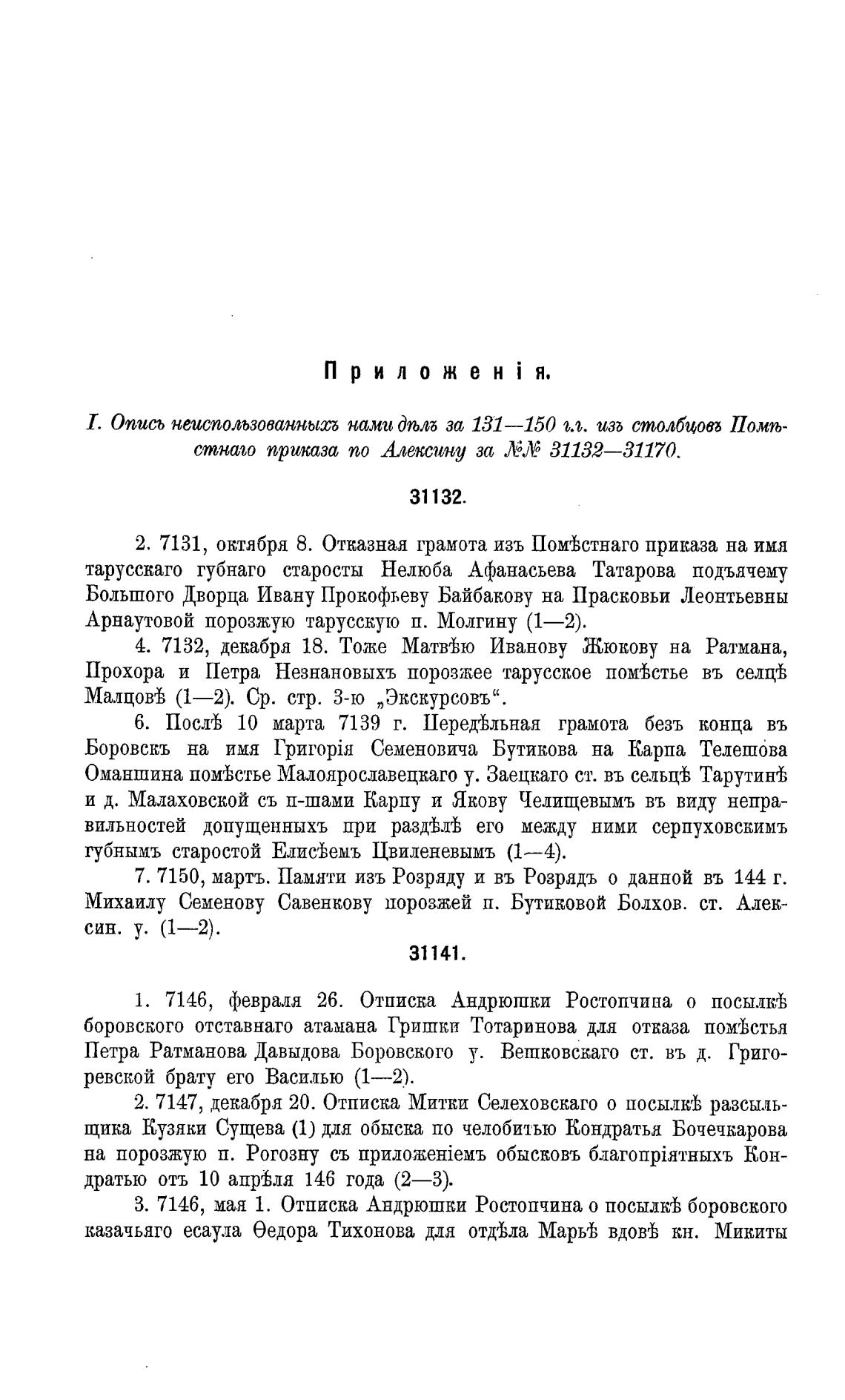 Т. Опись неиспользованныљ нами ДЉЛб за 131—150 ы. изг столбиоо Помп-