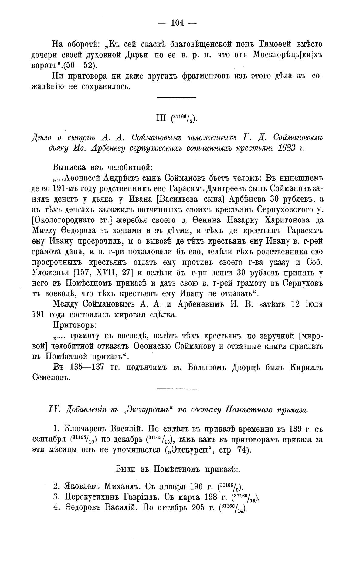 дьяку Ив. Арбеневу серпутовскпа;-ћ вотчиннытг, крестьянб 1683 1.
