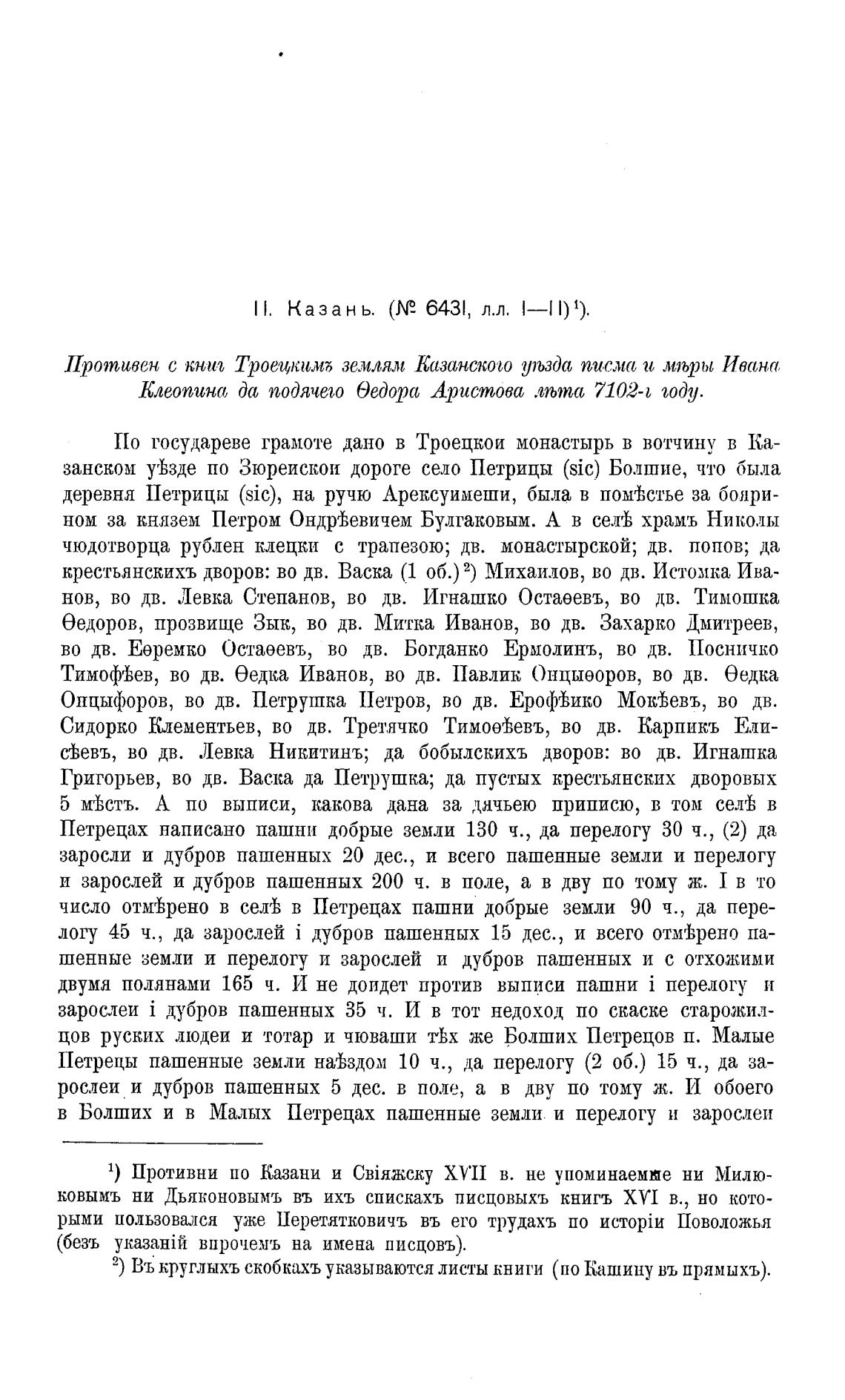 Противен с кнга Троеи,килљ землям Казанского уљзда пис.,ис и мљры Ивсн,а,