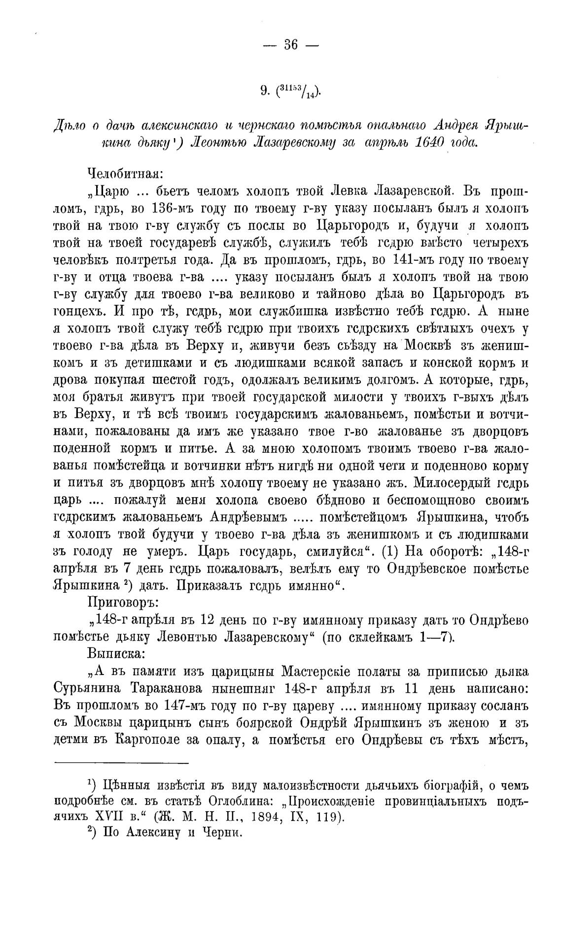 Дљл,о о дачљ алексинсксао и чернска,го помљстъя опальна,го Андрея Ярыш-