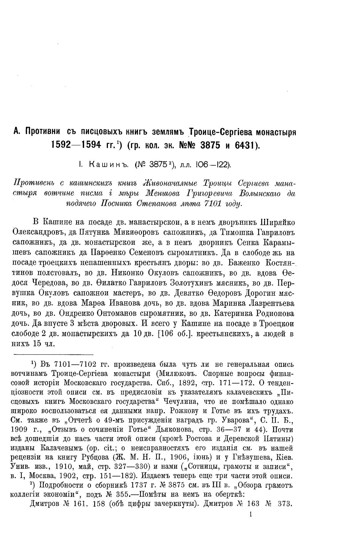 А. Противни съ писцовыхъ книгъ землямъ Троице-СергЈева монастыря