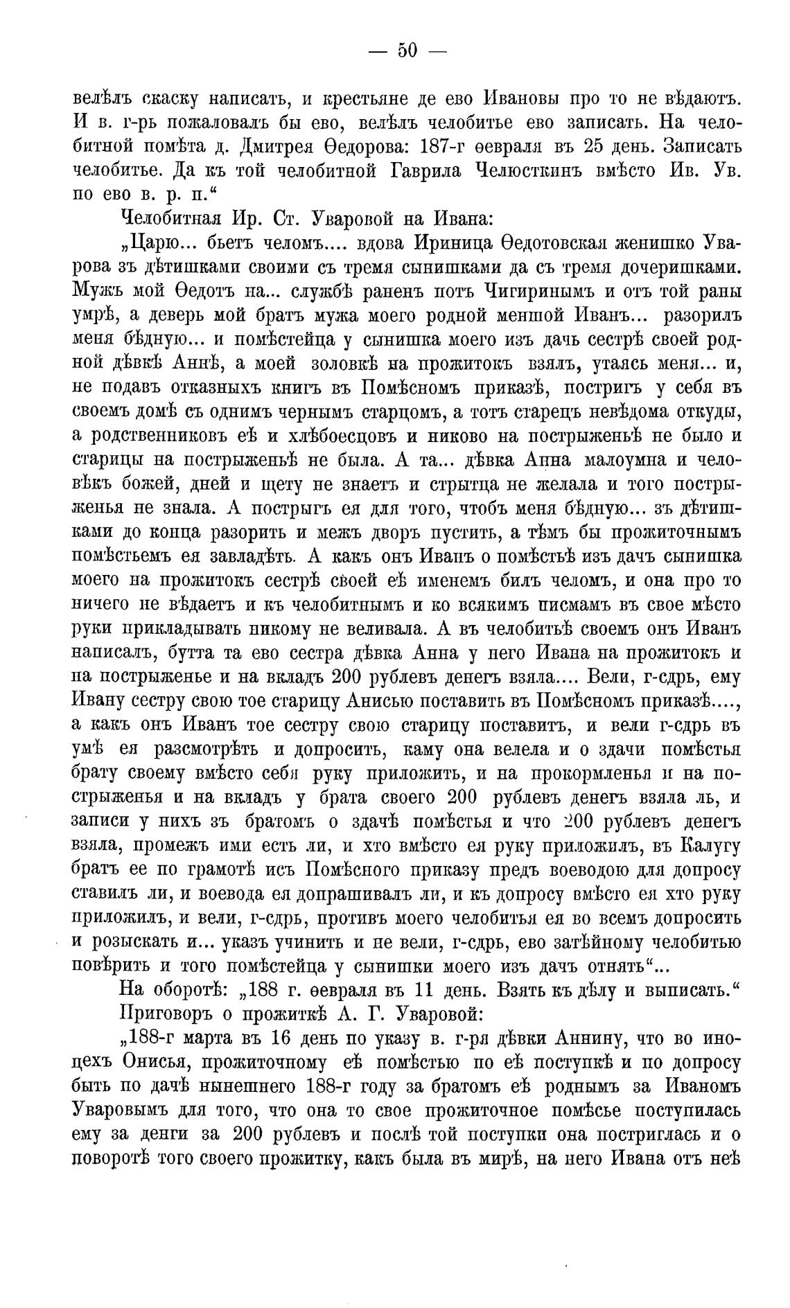 Челобитная Ир. Ст. Уваровой на Ивана: