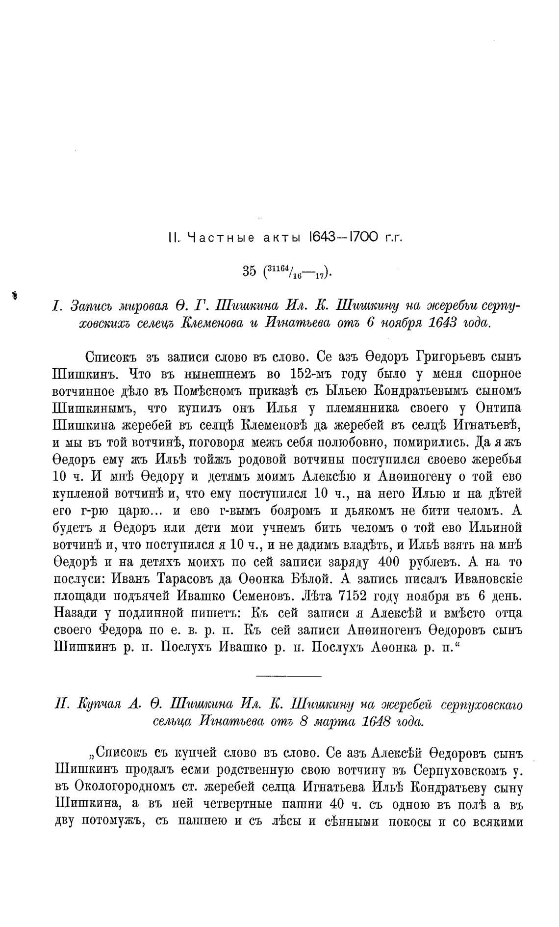 П. Частн ы е акты l643—1700 г,г.