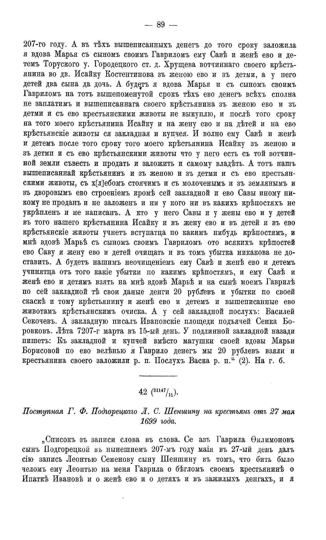 207-го году. А въ тъхъ вышеписанныхъ денегъ до того сроку заложила