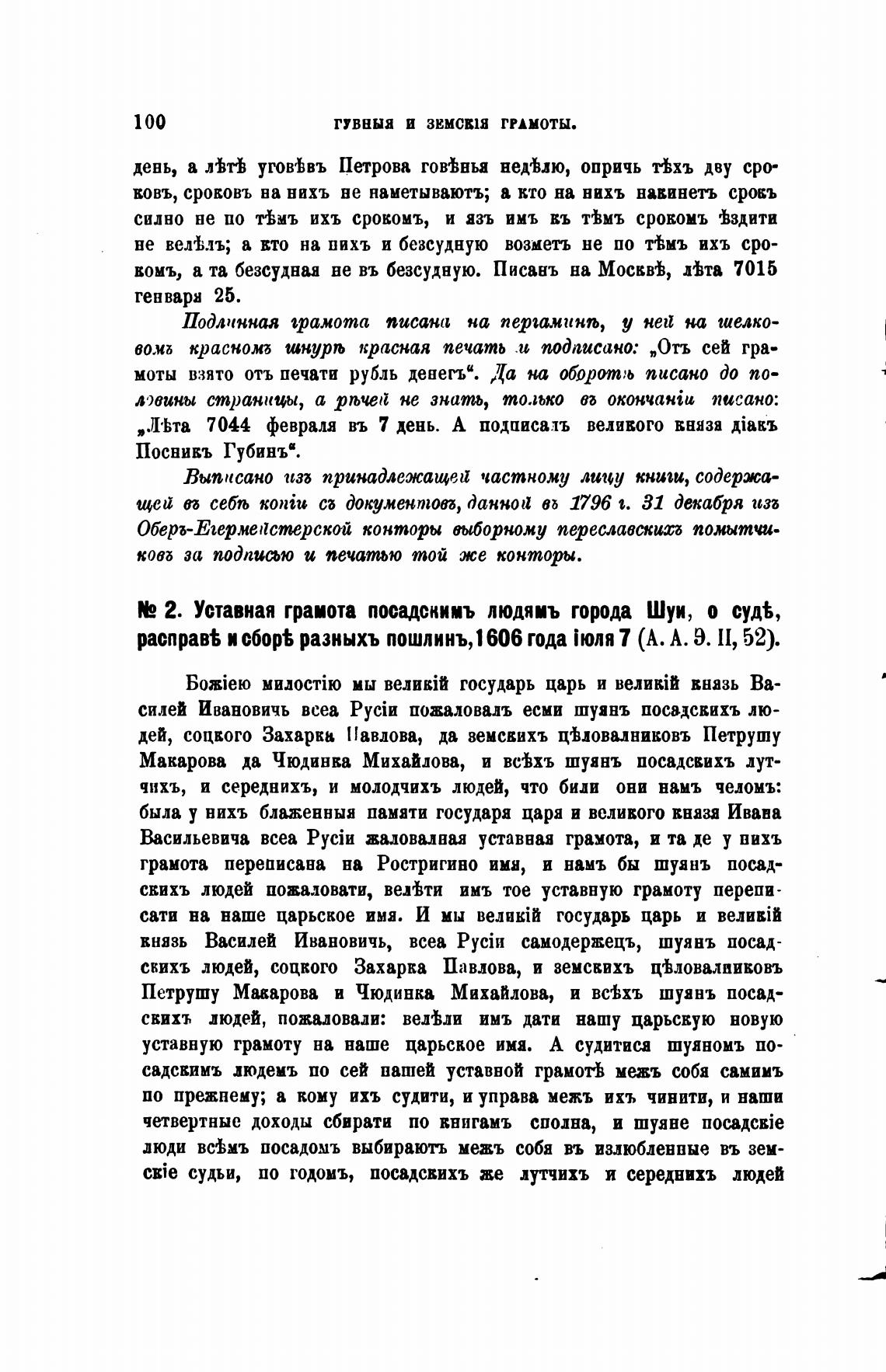 2. Уставная грамота посадскимъ людяиъ города Шуи, о суд%,