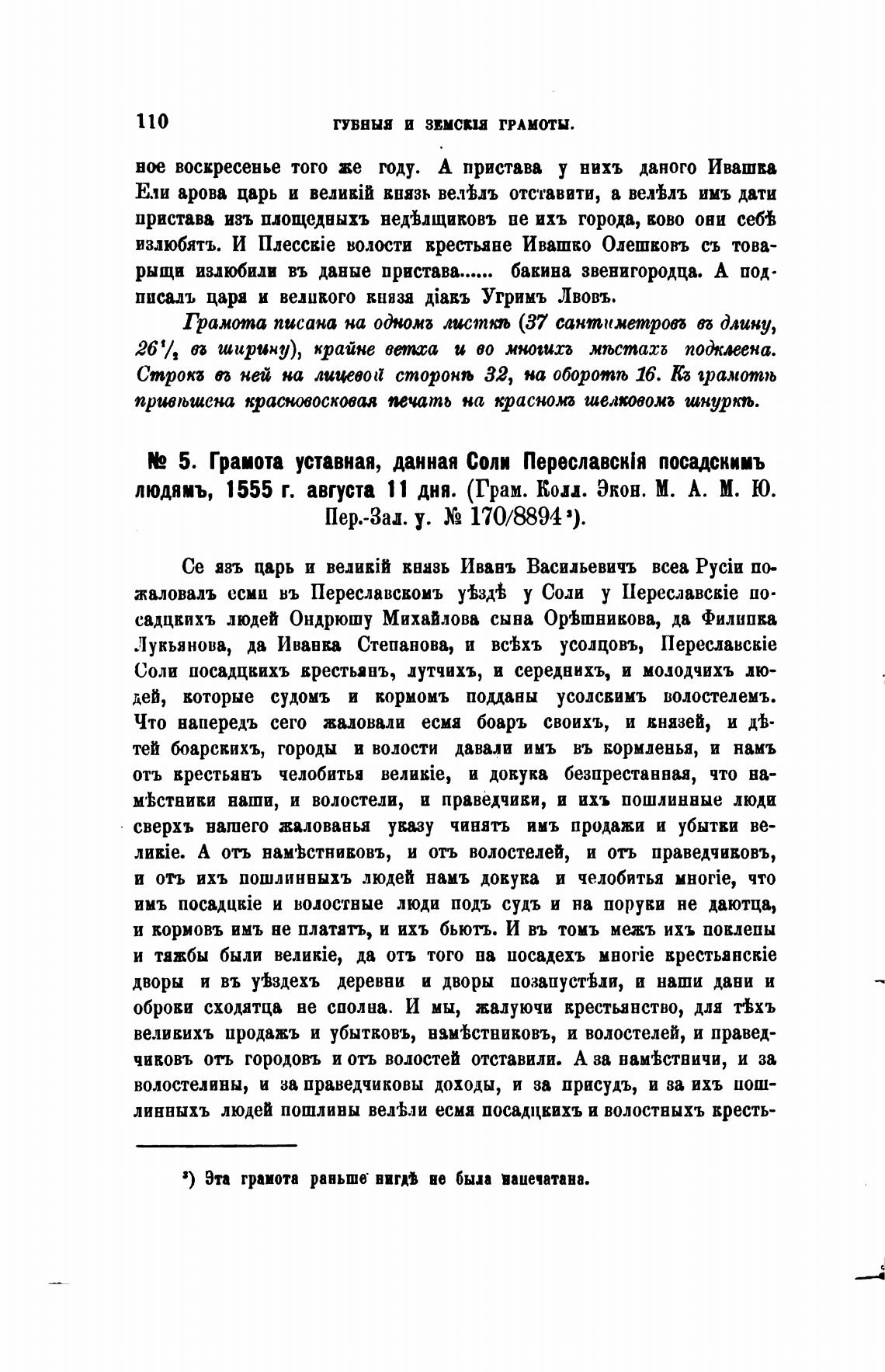 5. Грамота уставная, данная Соли Переславск'я посадскииъ