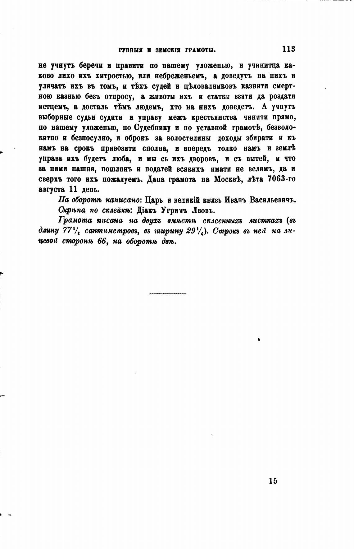 сверхъ того ихъ повадуемъ. Дана грамота на Мосвв•Ь, Ата 7063-го