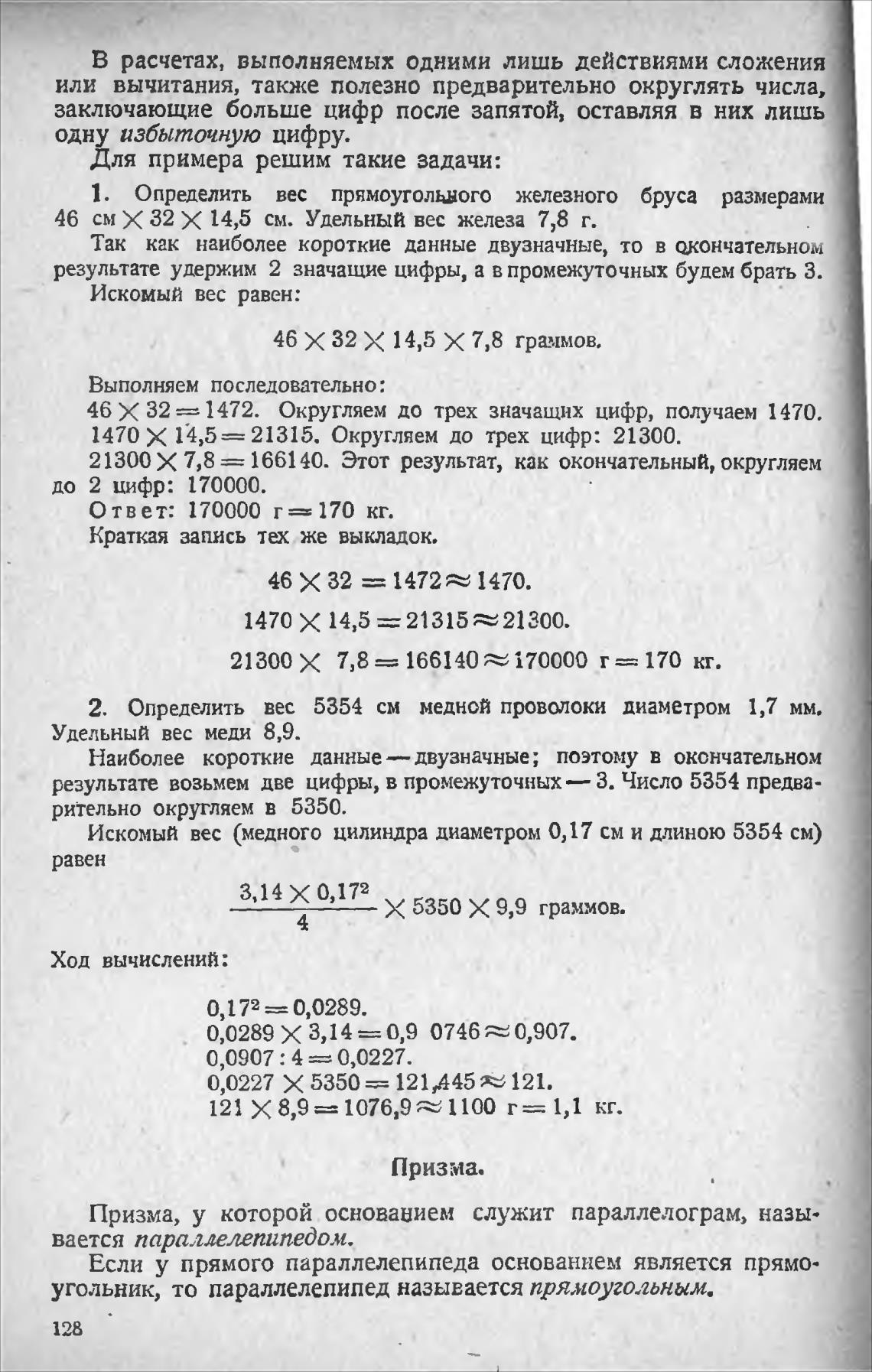1. Определить вес прямоугольного железного бруса размерами