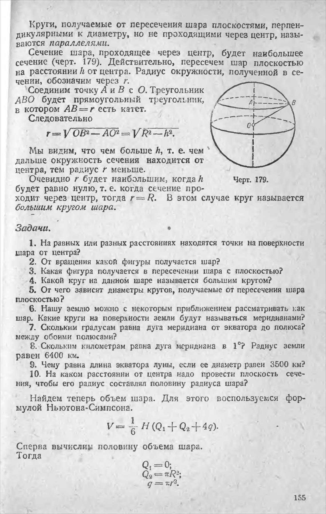 сечение (черт. 179). Действительно, пересечем шар плоскостью
