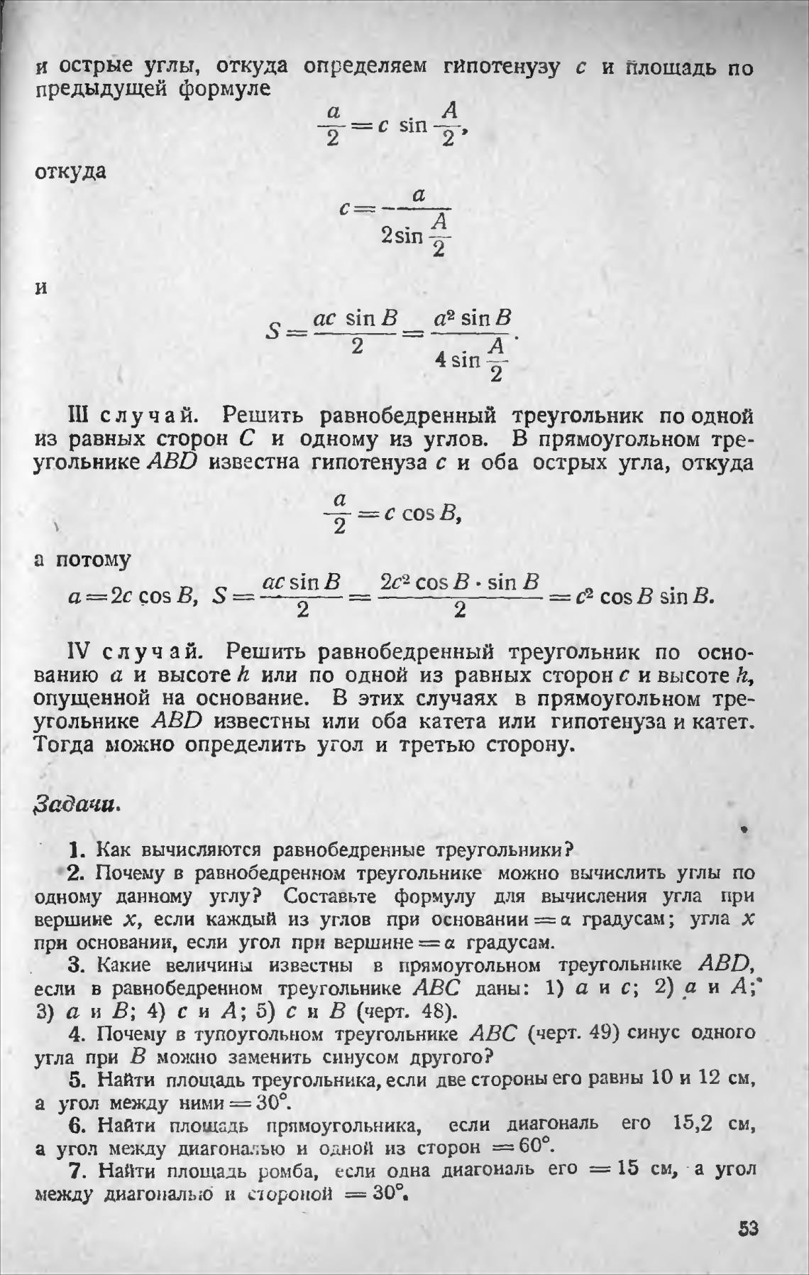 ванию а и высоте или по одной из равных сторон с и высоте К,