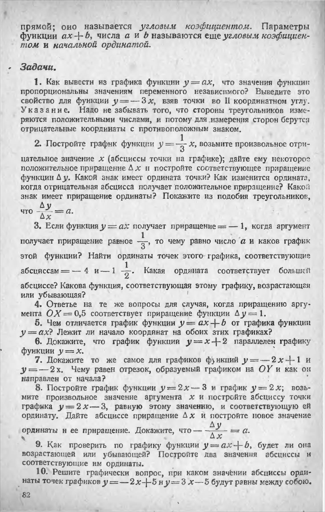 функции ах+Ь, числа а и Ь называются еще угловым коэфицкен-
