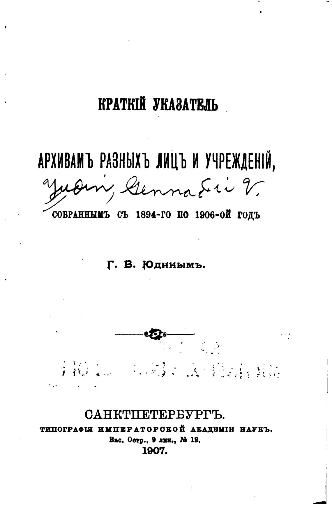 АРХИВАМЪ РАЗНЫХЪ ЛИЦЪ И УЧРЕЖДЕЮИ,