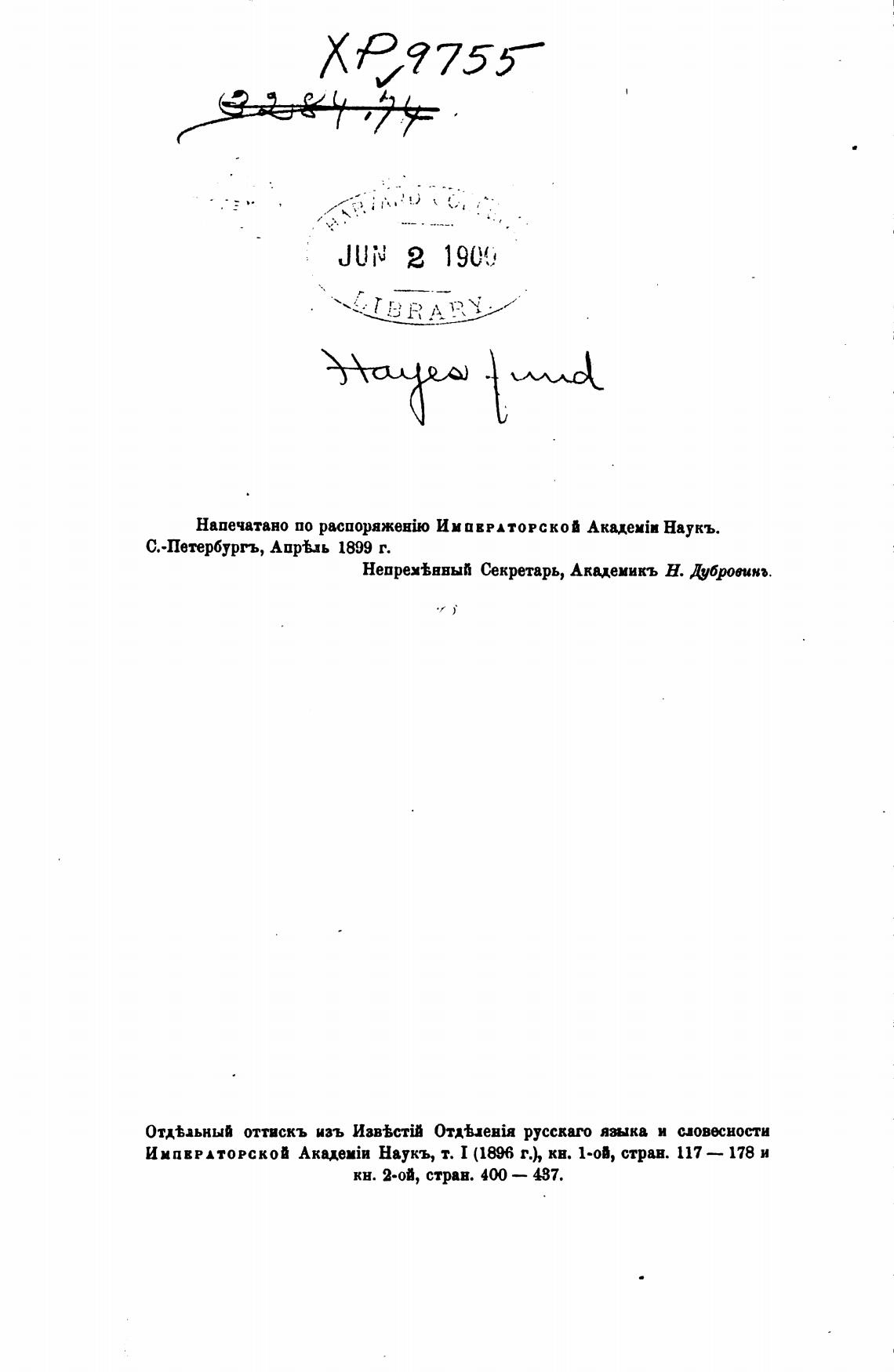 Отд±аьный оттискъ изъ ИзвВстШ русскаго и сдовЫ!ости