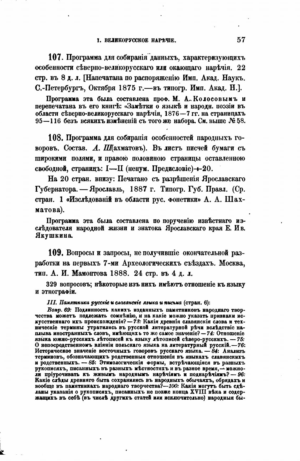 108. Программа мя собиранВ1 особенностей пародныхъ го-