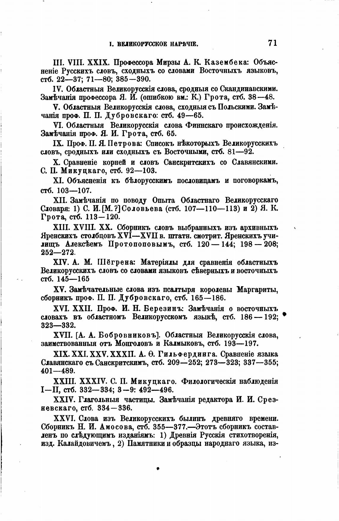 МХ. ХМ. XXV. ХХХП. А. е. Гильфердинга. CpaBHHie языка