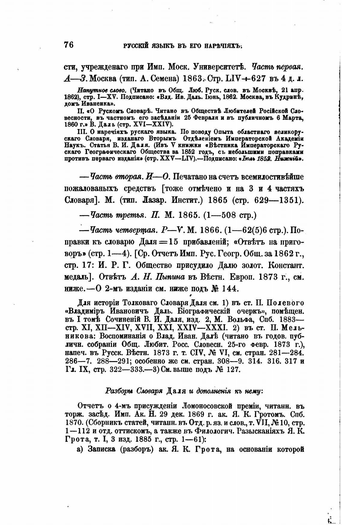Словаря]. М. (тип. Ла.зар. Инстит.) 1865 (стр. 629—1351).