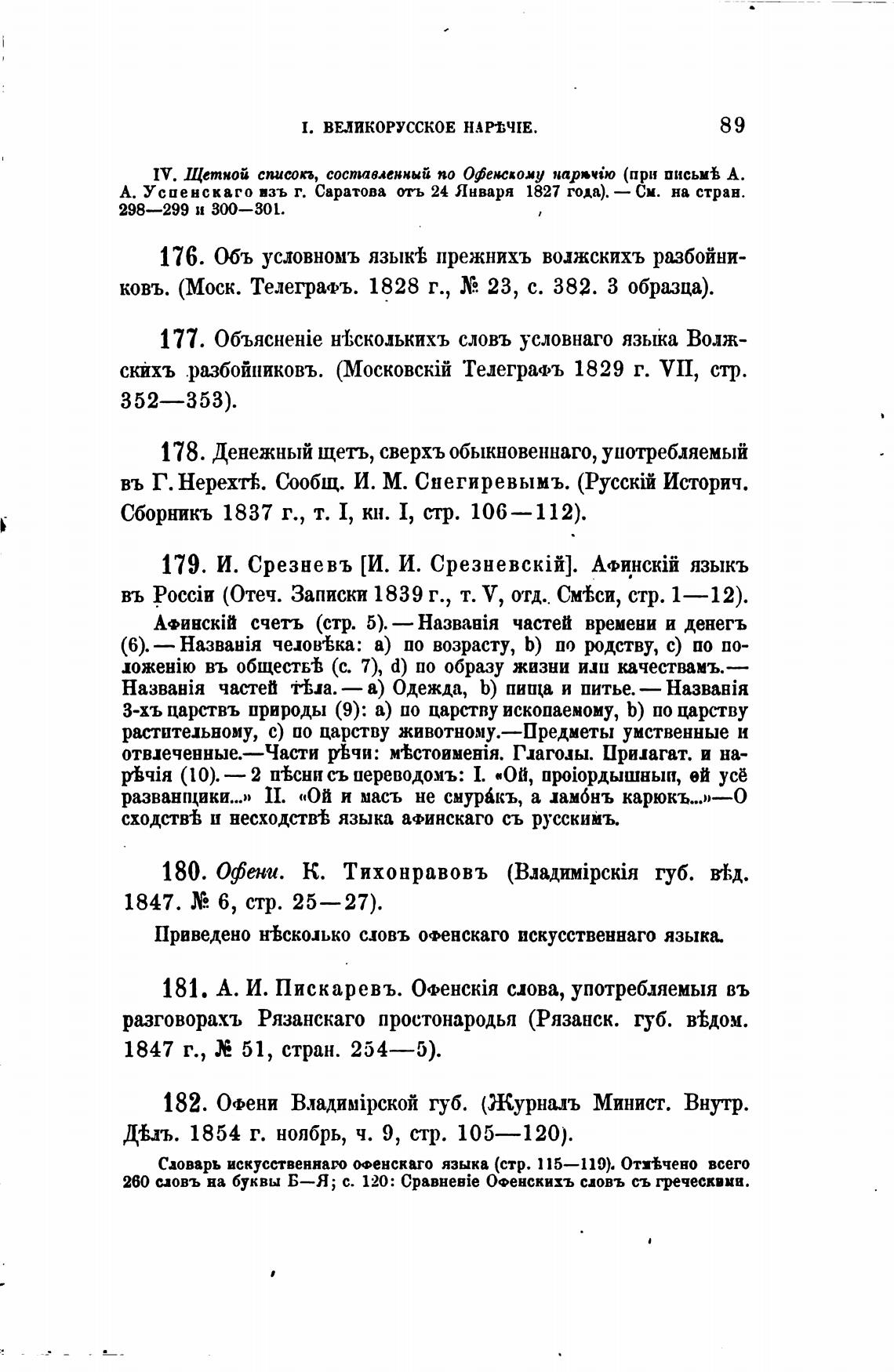 260 словъ на буквы ; с. 120: CpaBHeBie Офенскихъ сдовъ съ греческими.