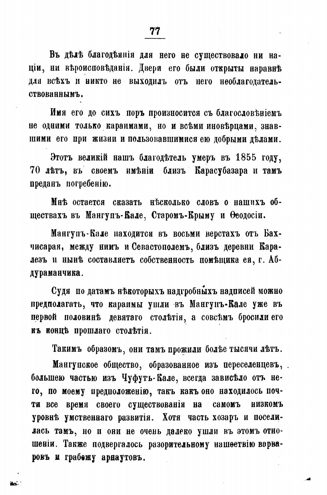 70 Лтъ, въ своемъ близь Карасубазара и тамъ