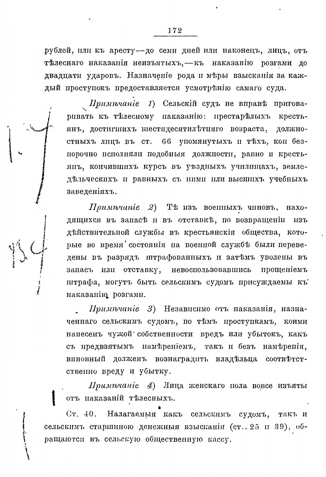 Ст. 40. Налагаемыя какъ сельскимъ судомъ, такъ и
