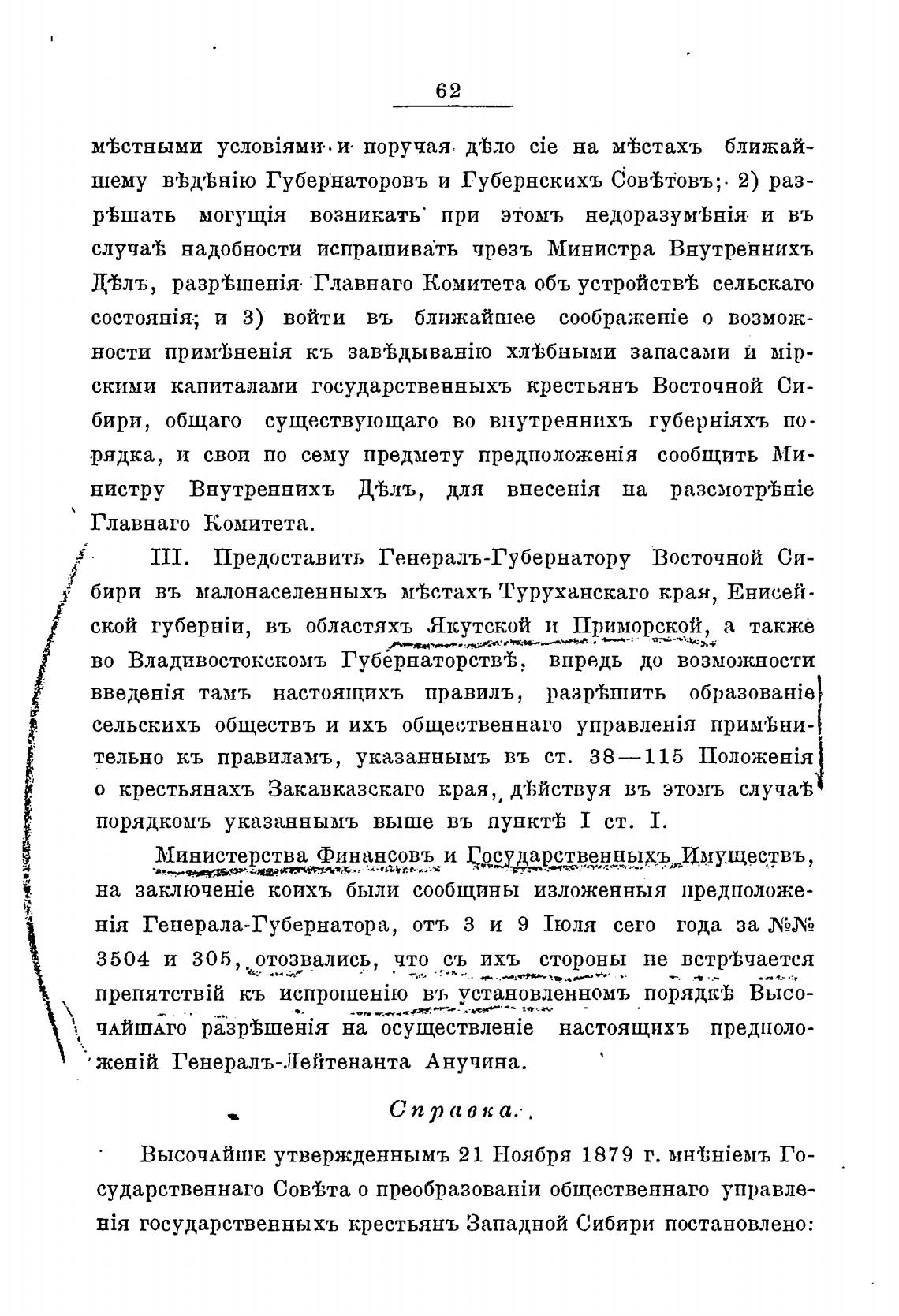 III. Предоставить Генералъ-Губернатору Восточной Си-