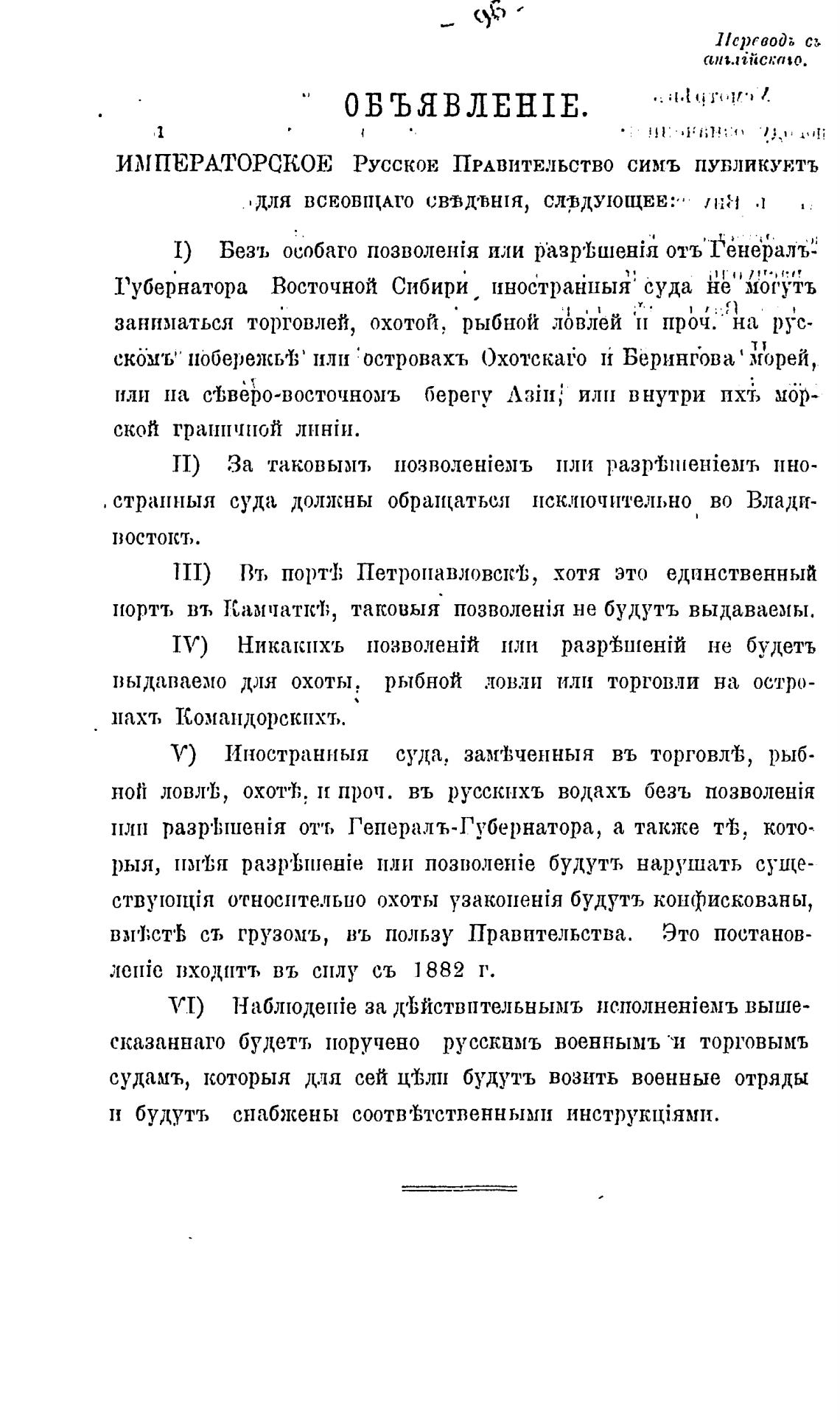 ной ловл'1;, охот“Ь. и проч. въ русскихъ водахъ безъ