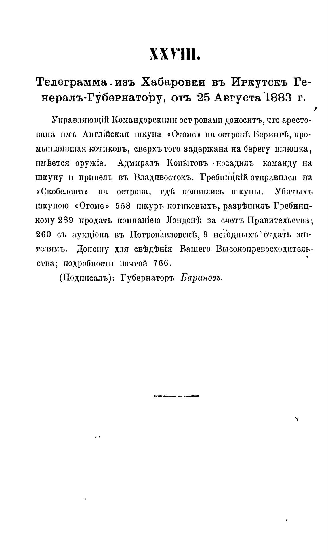 (Подппсалъ): Губернаторъ Бараноаг.