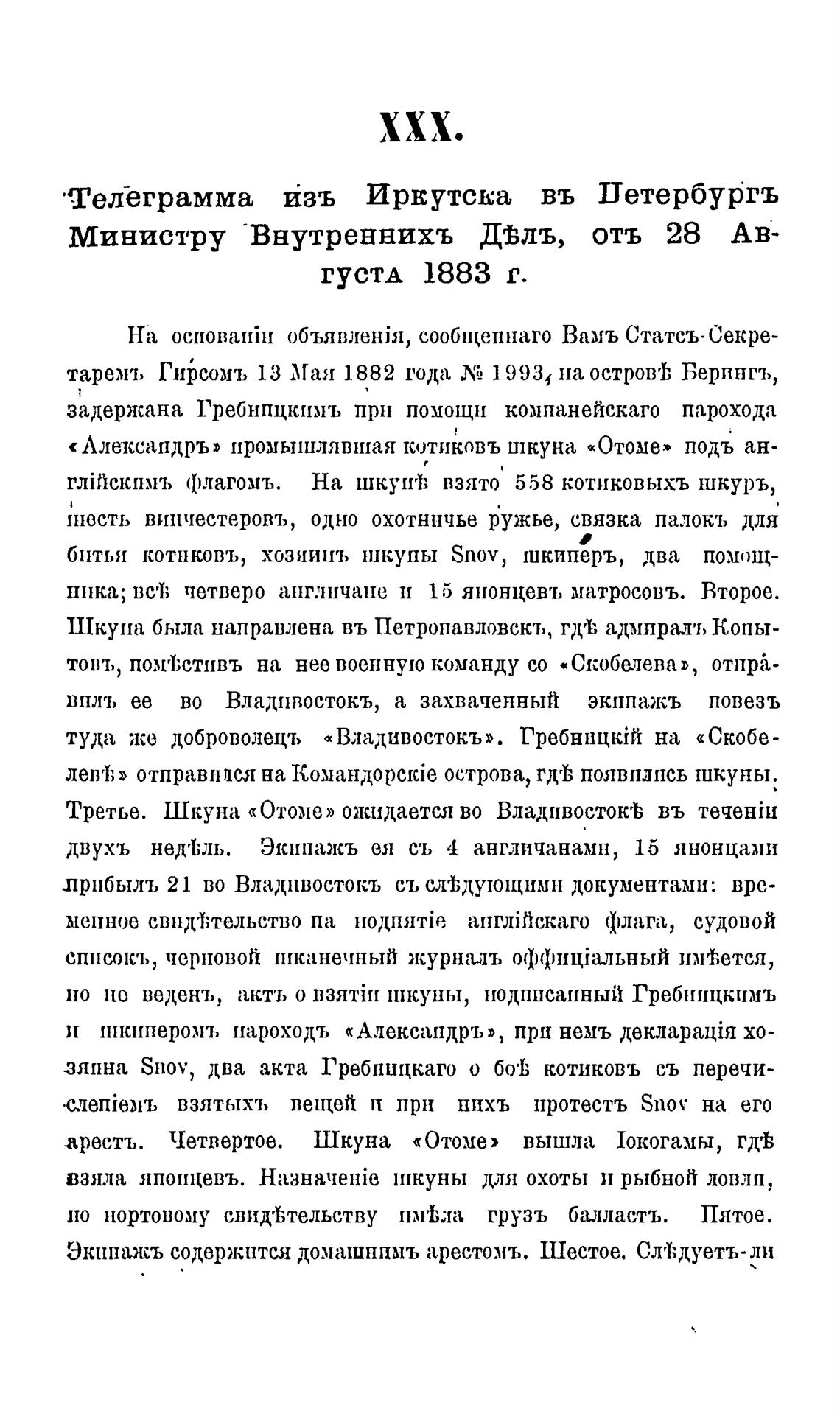 арестъ. Четвертое. Шкуна «Отоме» вышла гдгЬ