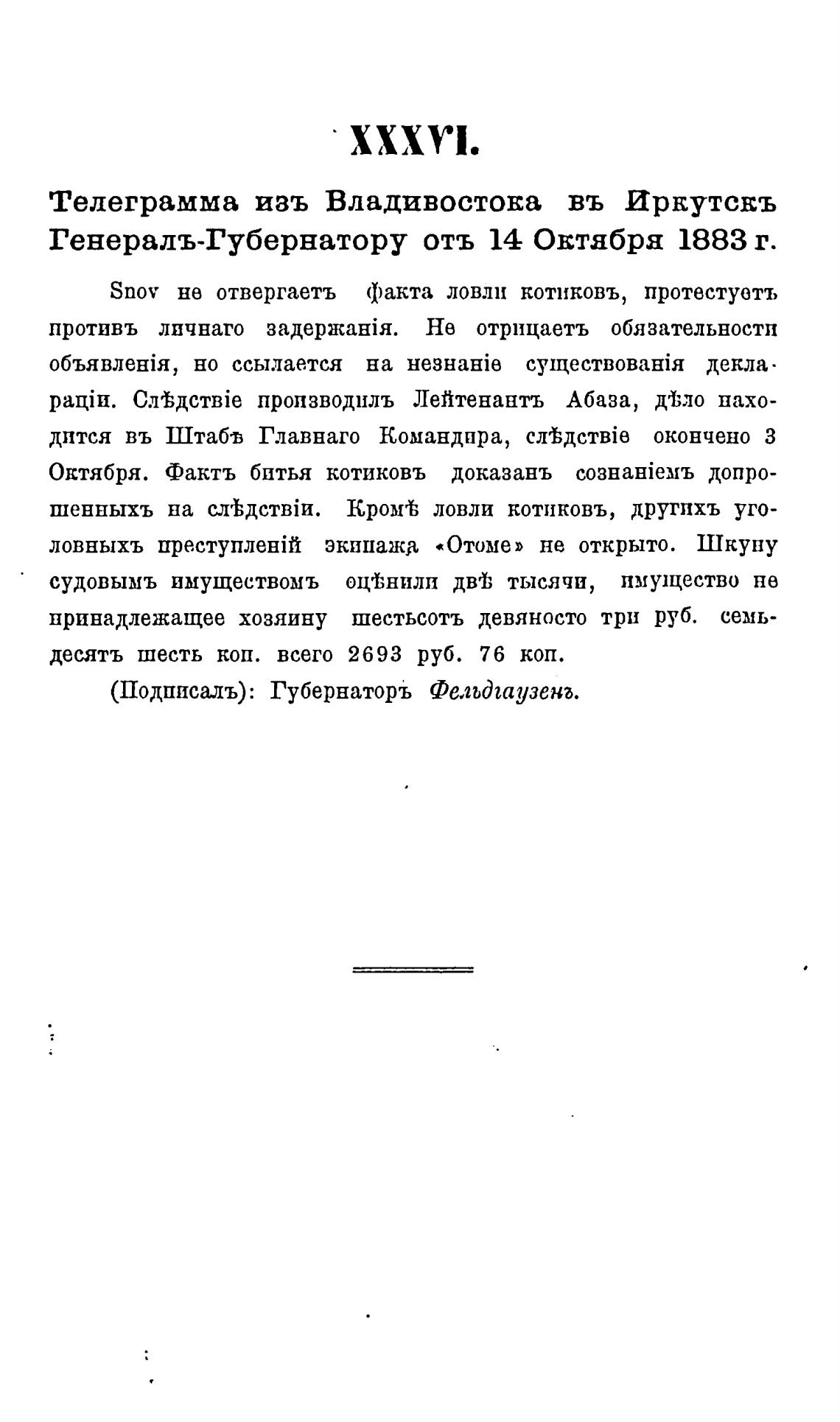 (Подписалъ): Губернаторъ Фельдгаузена.