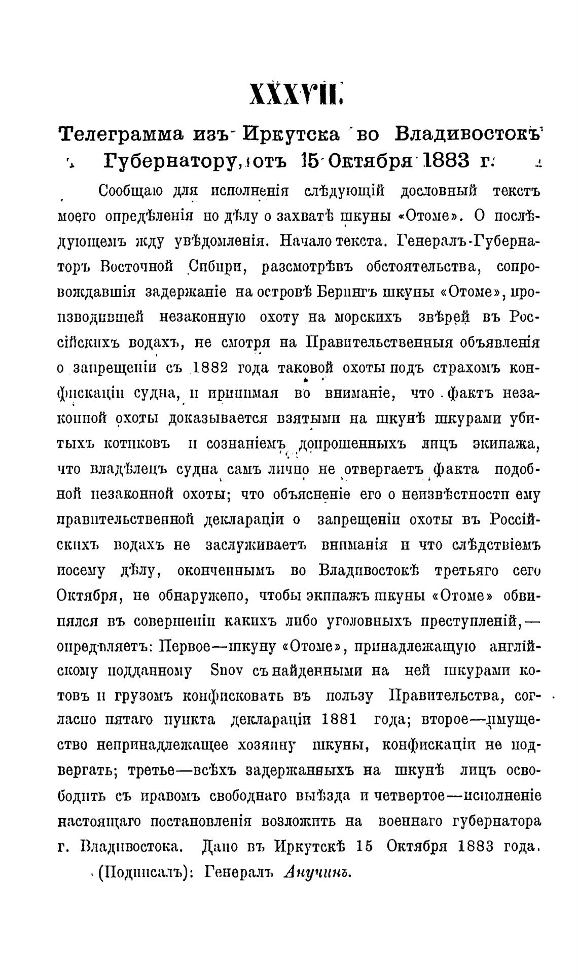 г. Владивостока. Дано въ Иркутск'Ь 15 Октября 1883 года.