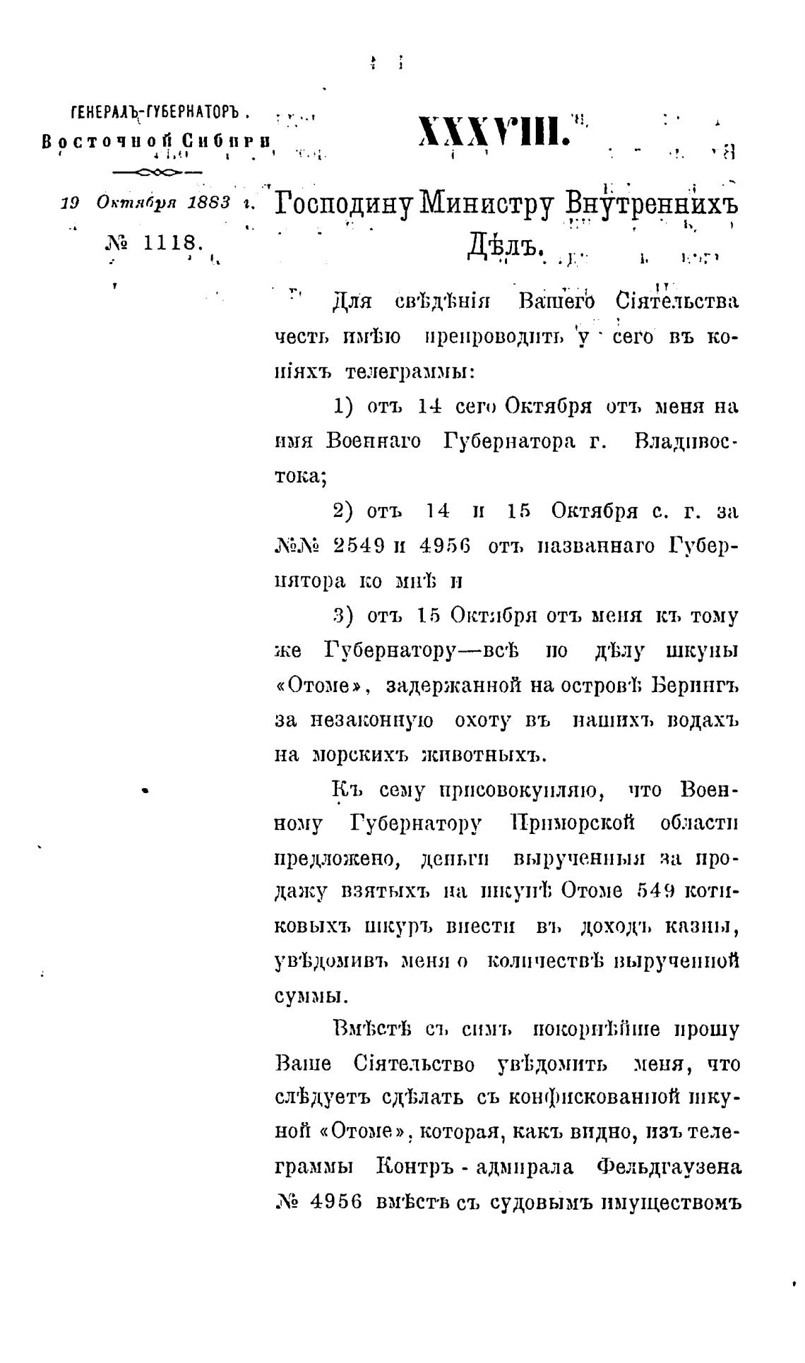 19 октября 1883 Господину Министру Внутреннихъ