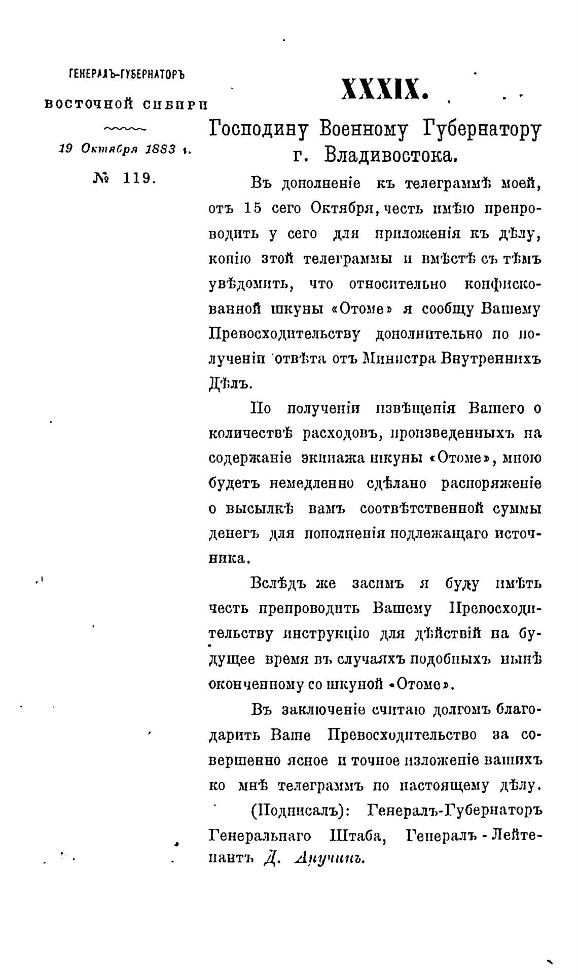 (1Тодписалъ): Генериъ-Губернаторъ