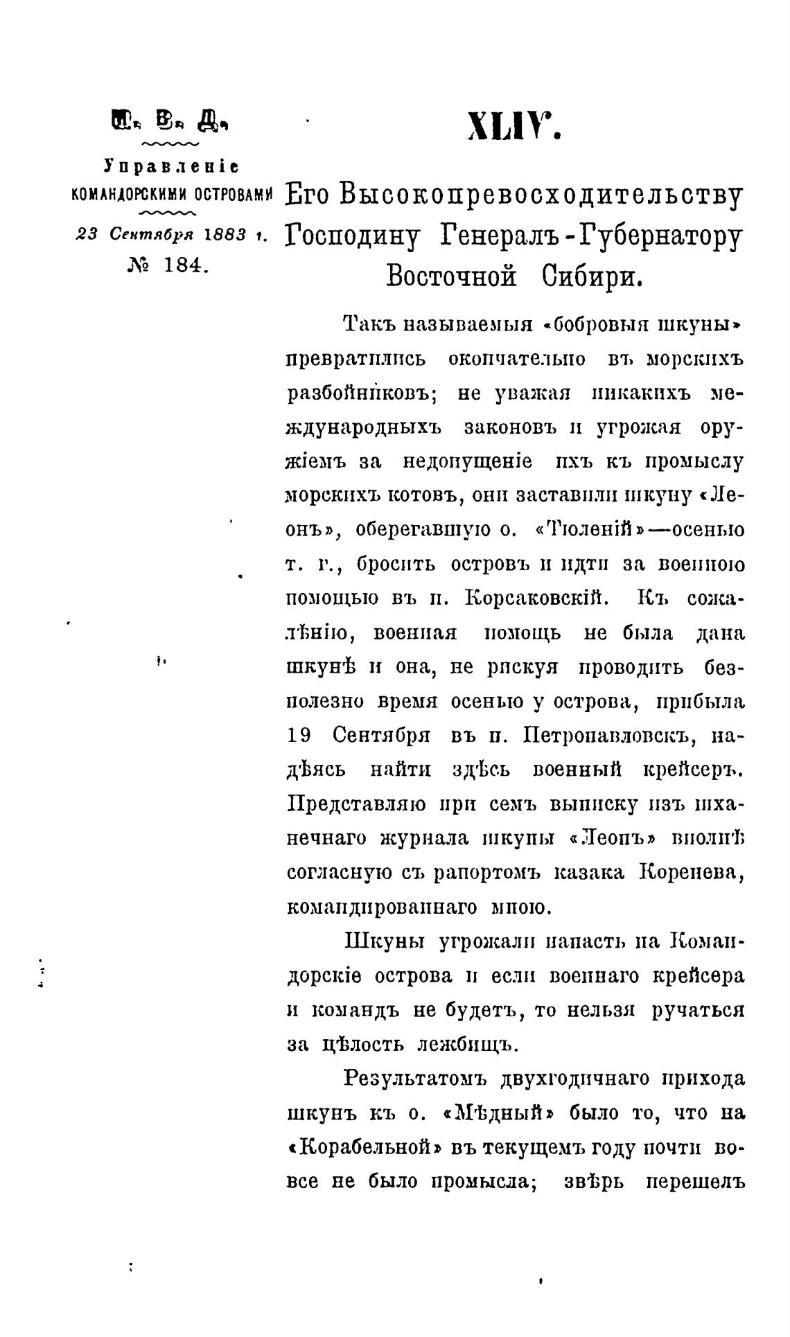 23 Сентября 1883 т. Господину Генераль -Губернатору