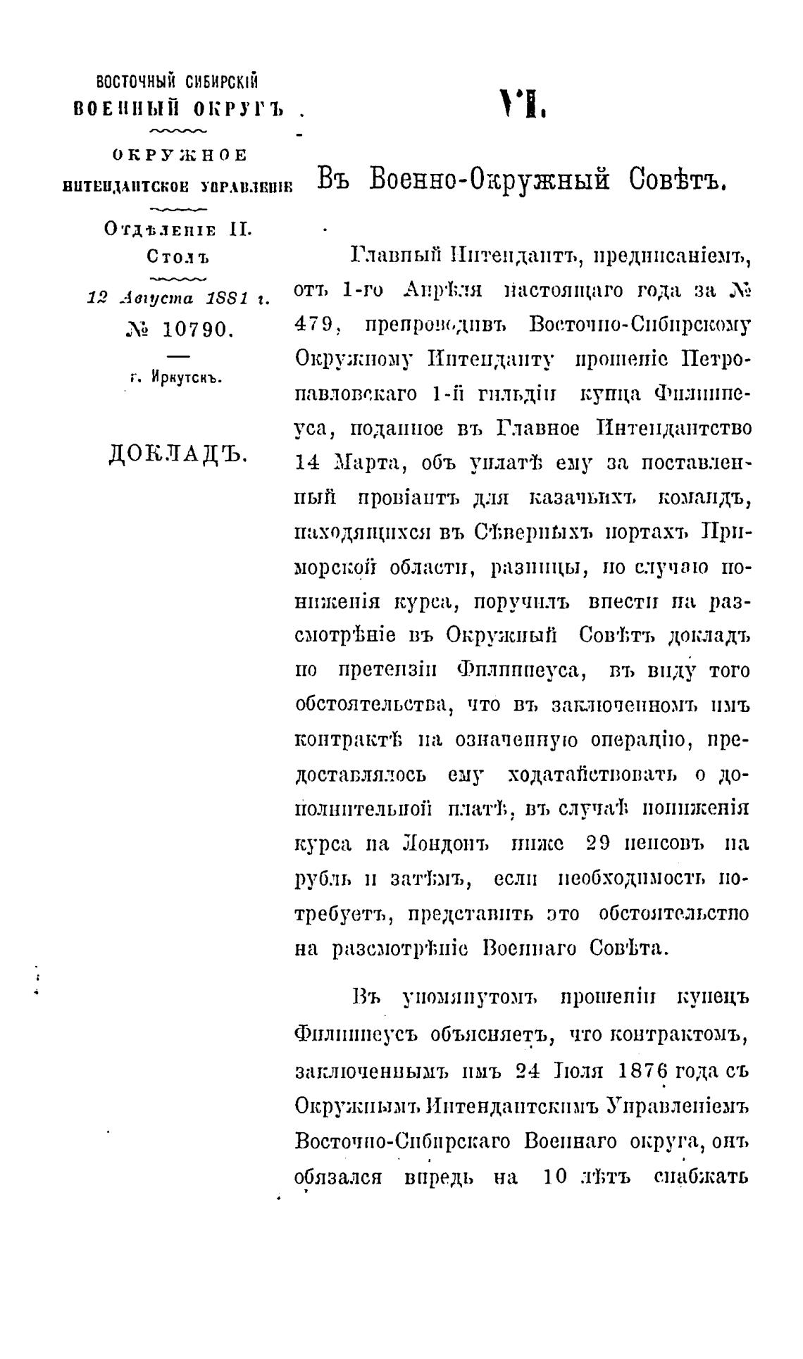 въ Окружный докладт,