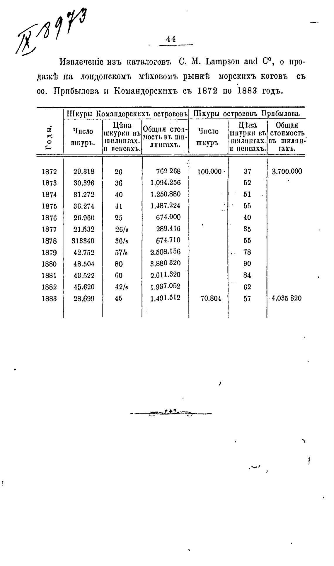 00. Прибылова и Командорскихъ съ 1872 по 1883 годъ.