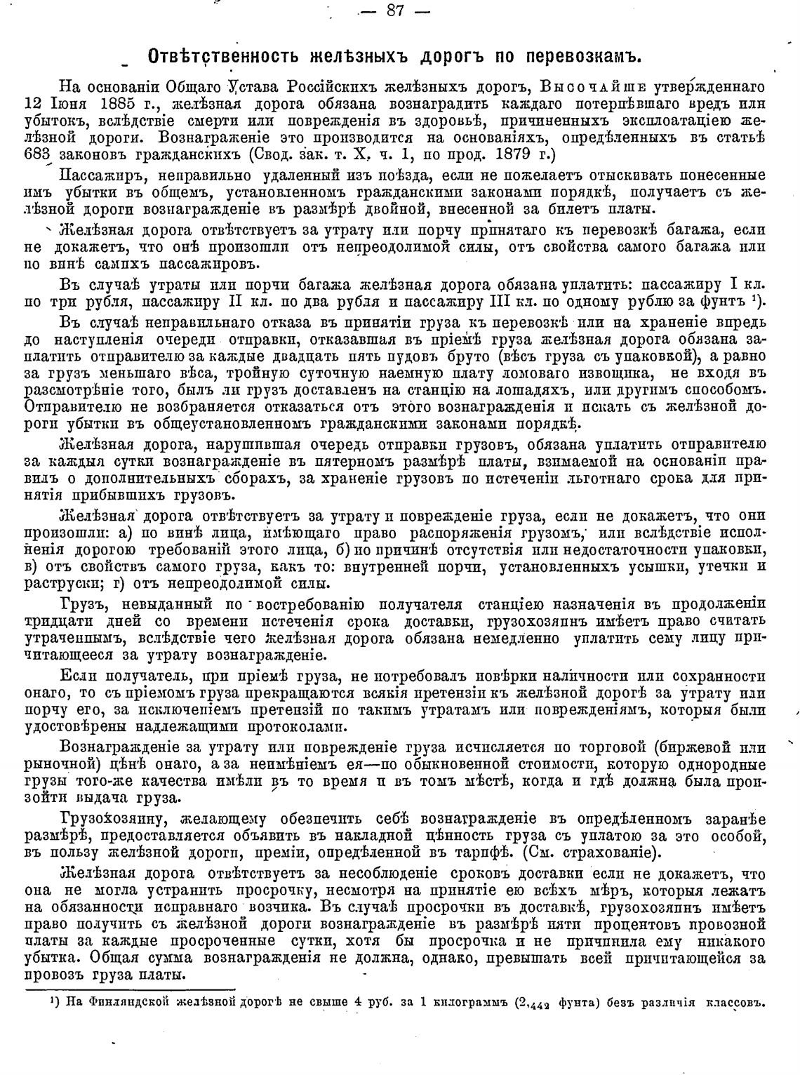 1) На финдяндскоЙ жед±зноЙ дорогЬ не свыше 4 руб. за 1 БИјограммъ (2,442 фунта) безъ раздптйя влассовъ.