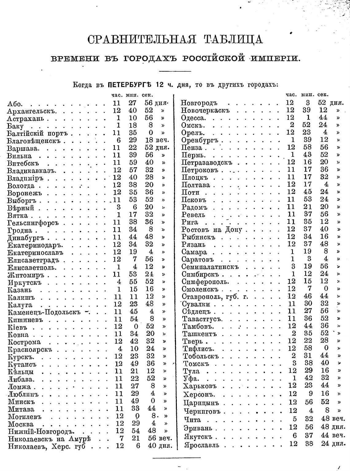 ВРЕМЕНИ ВЪ ГОРОДАХЪ РОССЛЙСКОЙ