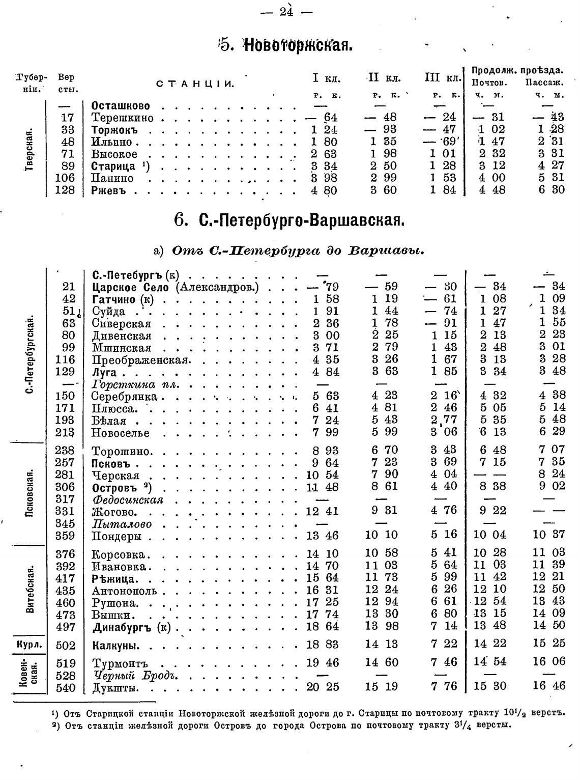 1) Отъ Старицкой станцП[ Новоторжской жел•ьзпой дороги до г. Старицы по почтовому транту 101/2 верстъ.