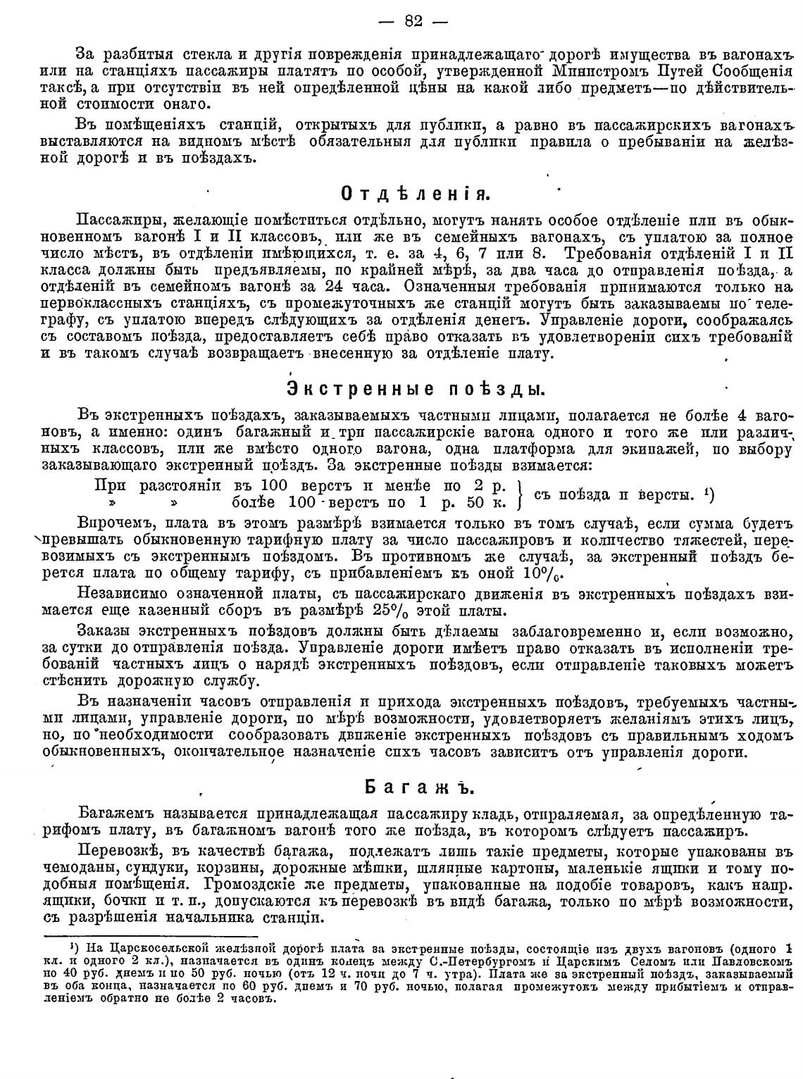 Ј) На Царсвосельсвой жед±зной дорог•Ь плата ва экстренные по%зды, изъ двухъ вагоновъ (одного 1