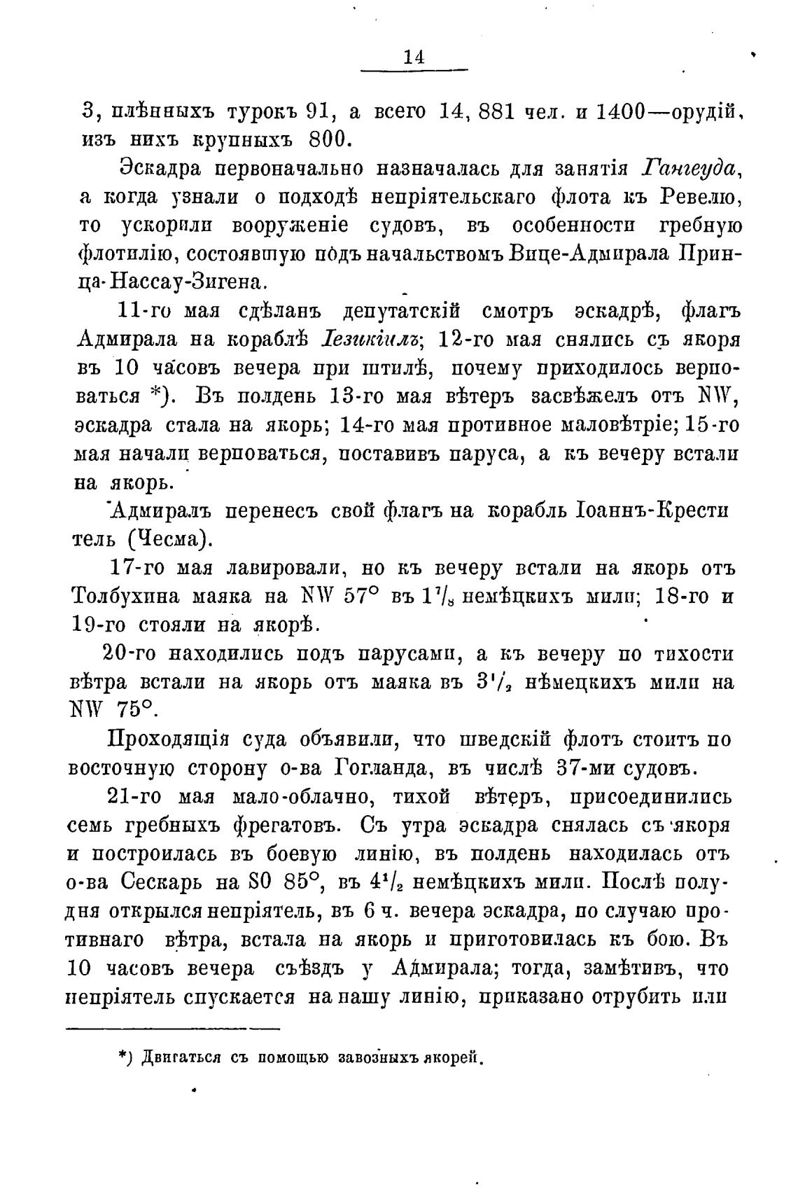 эскадра стала на якорь; 14-го мая противное 15 -го
