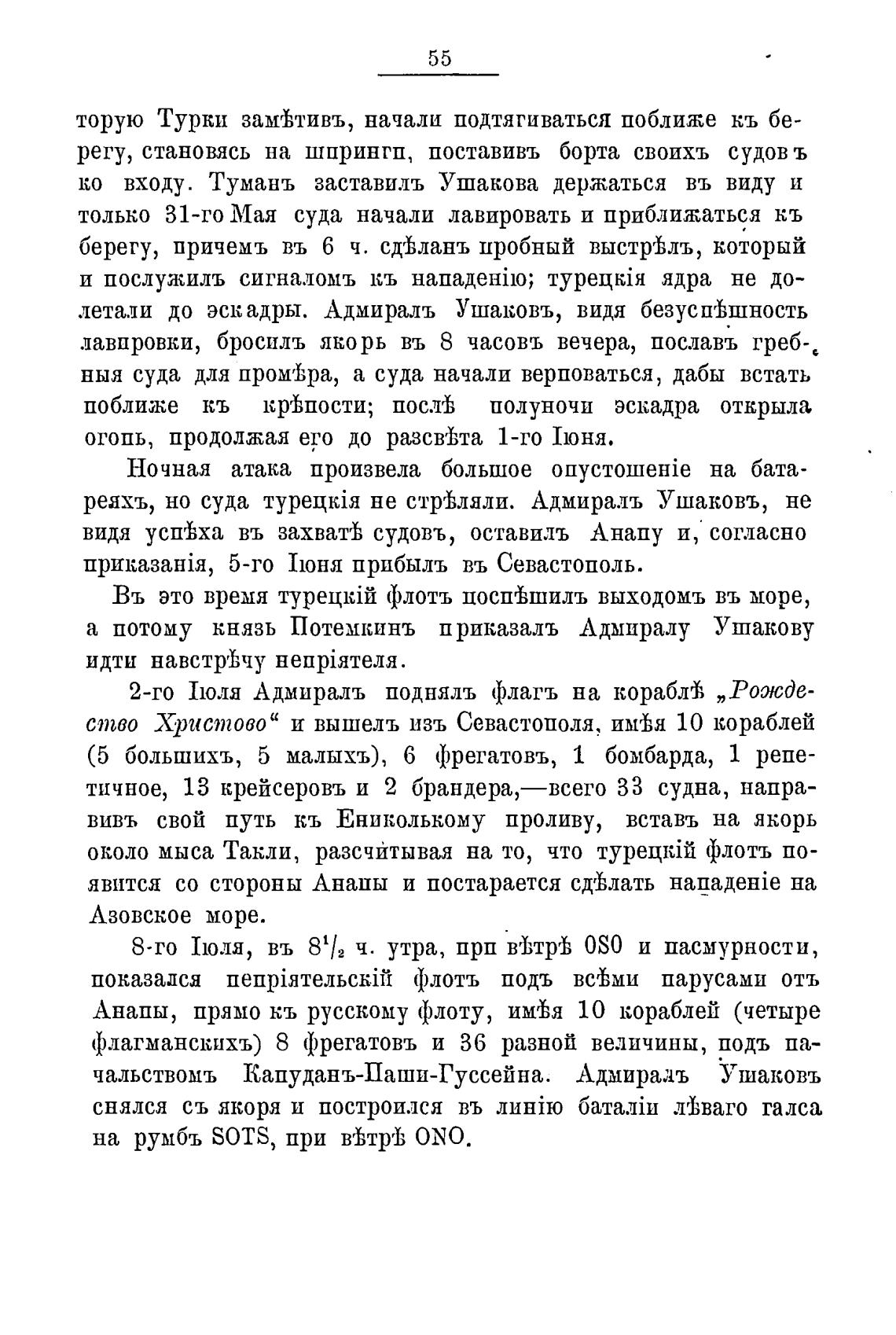 реяхъ, но суда не стреЬляли. Адмираль Ушаковъ, не