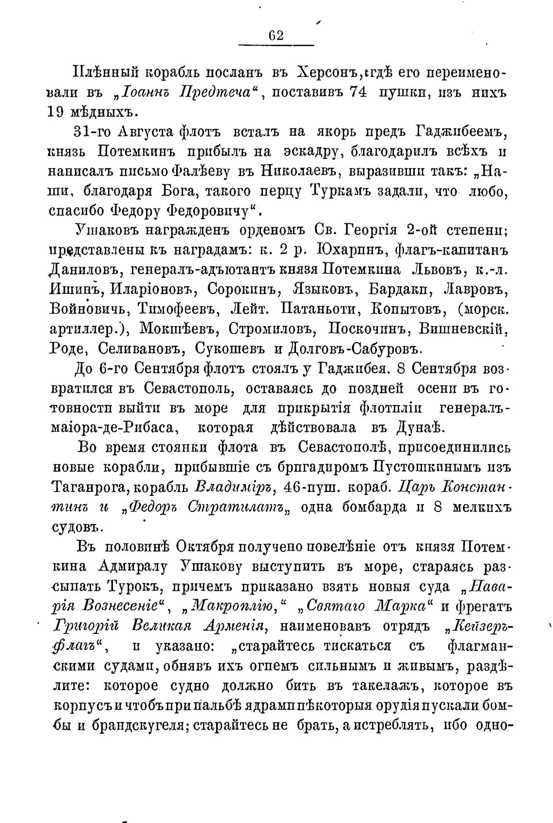 До 6-го Сентября флотъ стояль у Гаджибея. 8 Сентября воз-