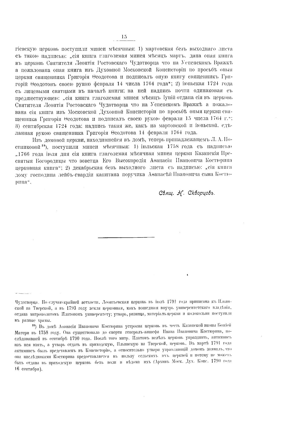 церкви священника Неодотова и подписалъ оную книгу священникъ 1'ри-