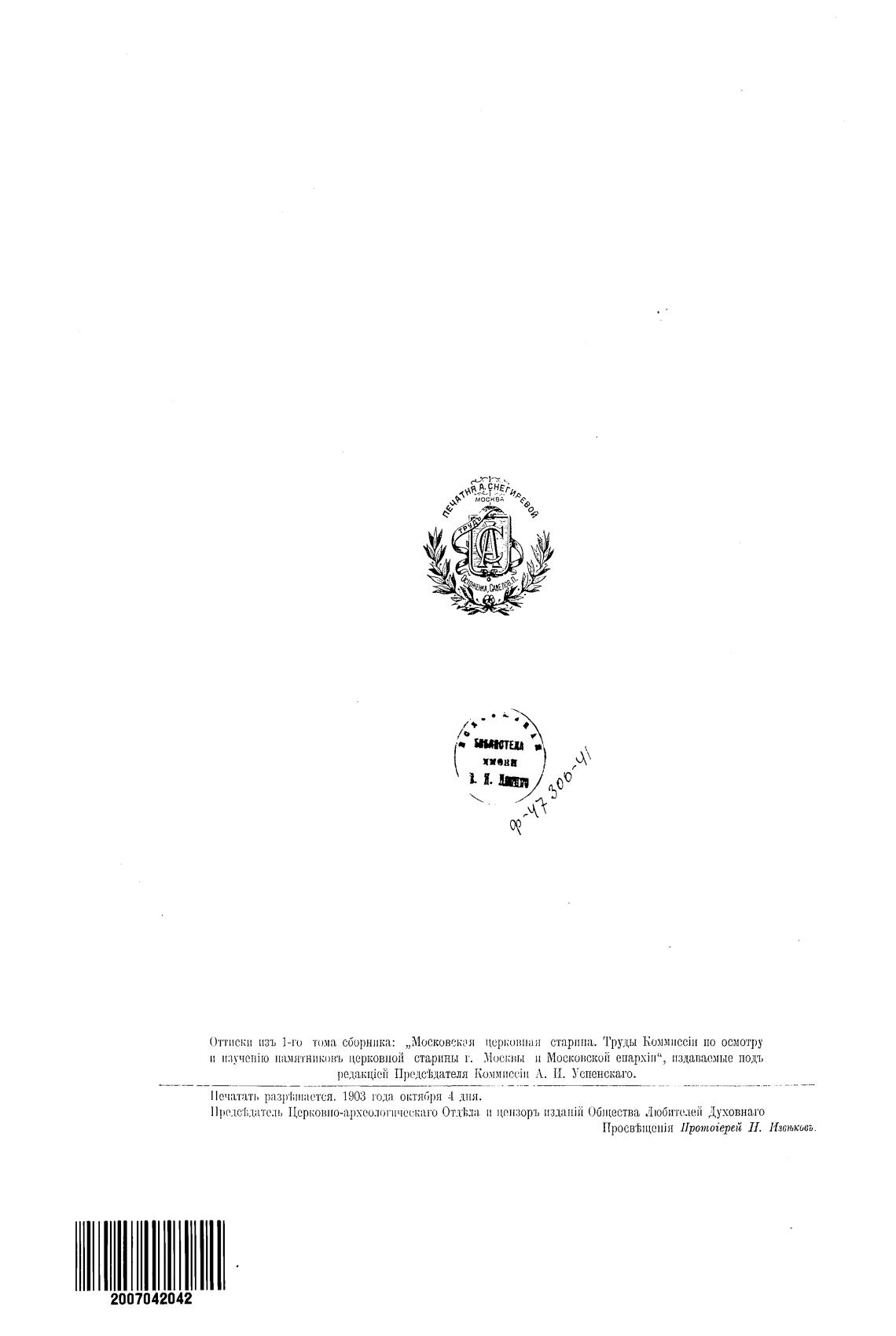 ()ттигки изъ 1-го том.т сборника: „Московская церковлан старина. Труды kuMM11CCiII осмотру