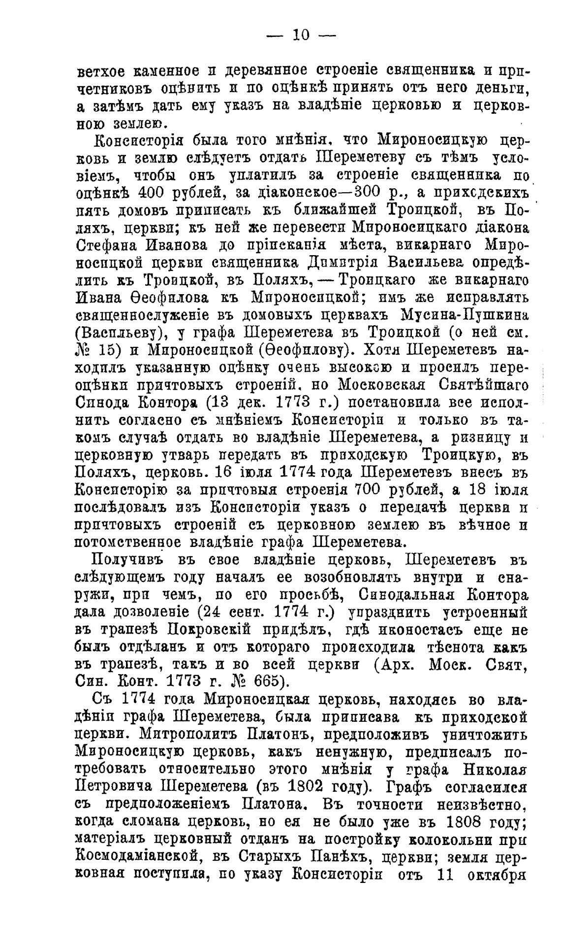 Съ 1774 года Мироноеицва.а церковь, находясь во вла-